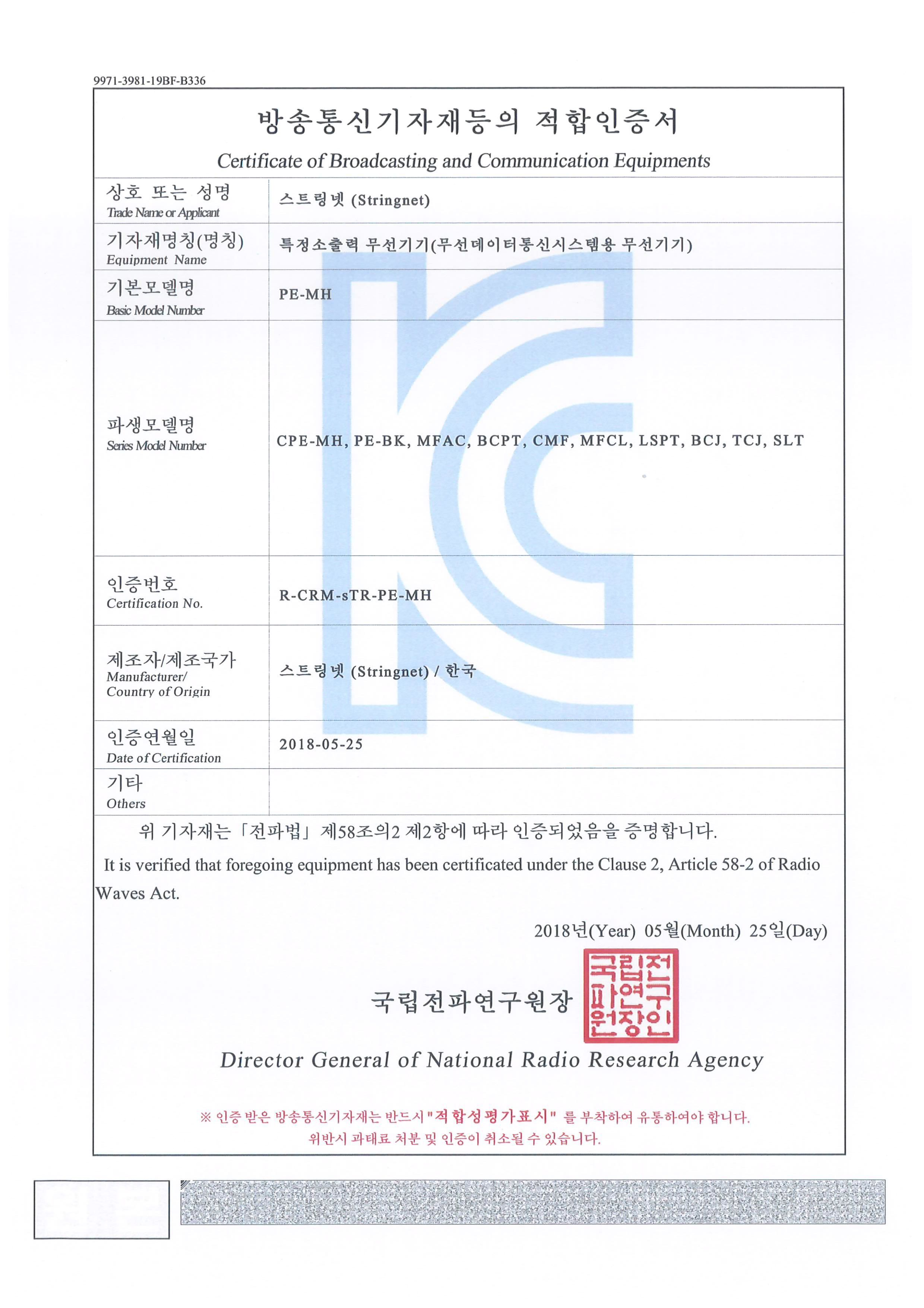 KC認証 : R-CRM-sTR-PE-MH