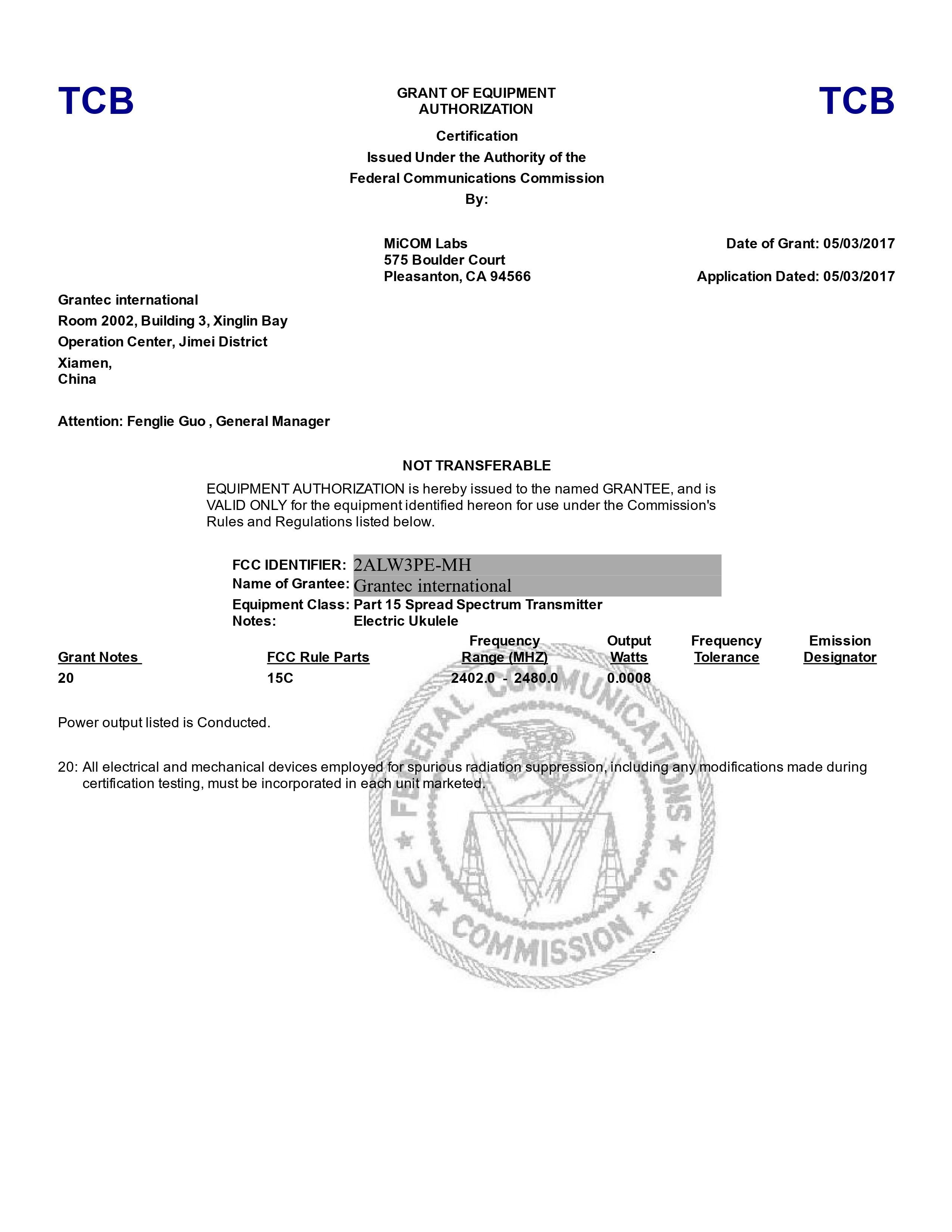 EleUkeピーナツは既に米国のFCCと韓国のKC認証を受けましたように