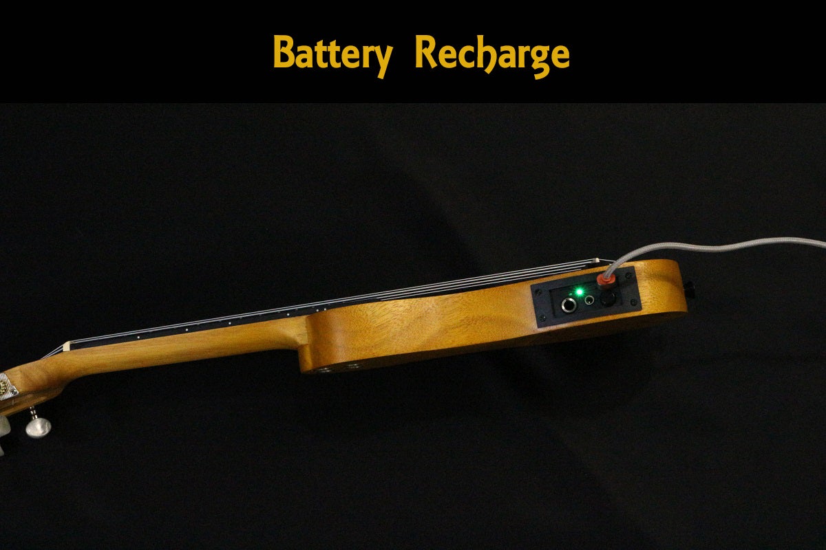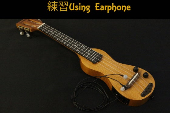 では、イヤホンを使って、隣に迷惑を掛けずに練習出来るピーナッツ形の電気ウクレレ