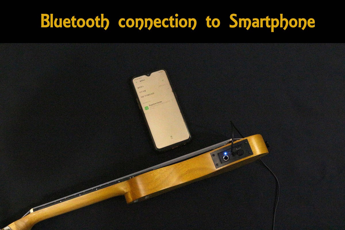 A)スマートフォンとのBluetooth接続は、内部電源をOnする必要があるため、必ずイヤホンジャック又はアンプジャックをまず接続した後、 Bluetoothのボタンを押してからスマートフォンの設定機能で、BluetoothをON後BugsGear-EleUkeデバイスを見つけ 選択してくだ下さい。 詳細については、エレウケ裏面のユーザーマニュアルアドレスを参照してください。