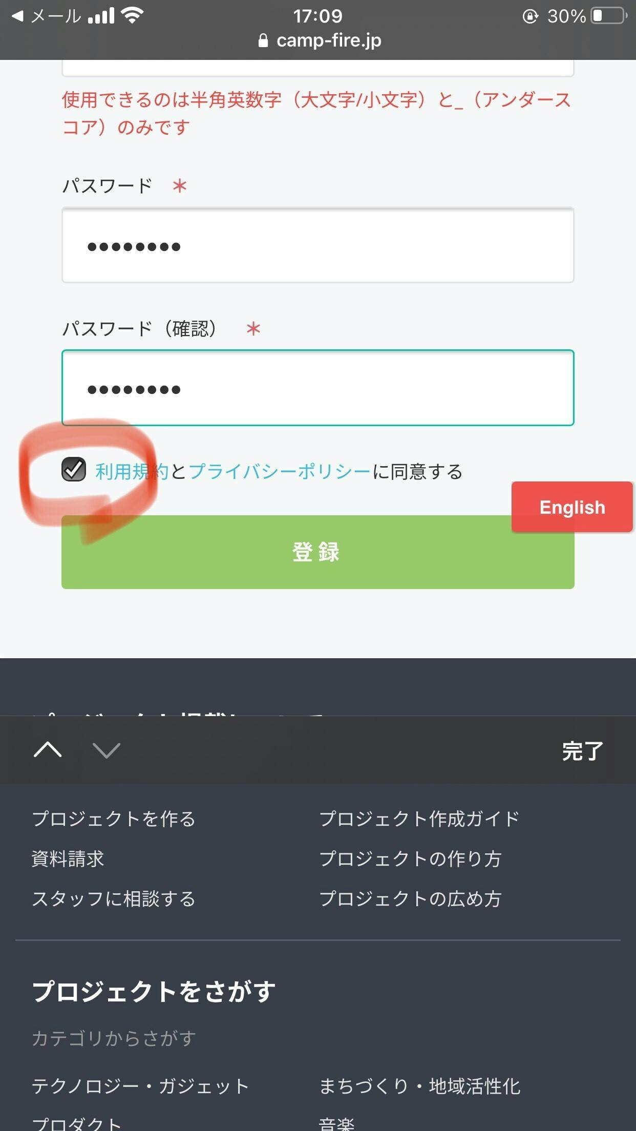 「利用規約とプライバシーに同意する」の左をタップ(忘れがちなので注意)し、