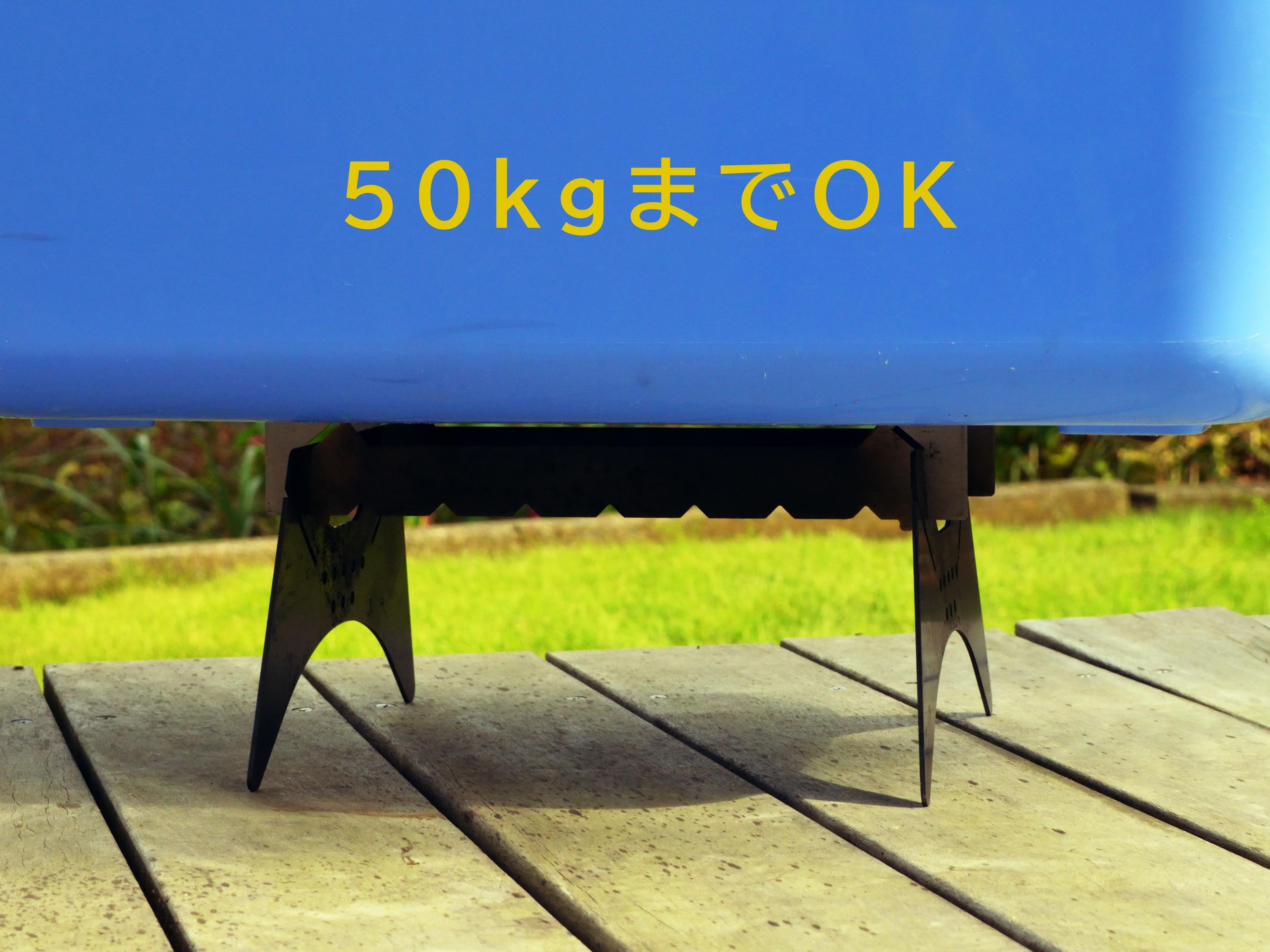 スタンドは、脚部パーツ2個と五徳1組で組み立てられ、簡単な作りながら50kgまで載せられます。