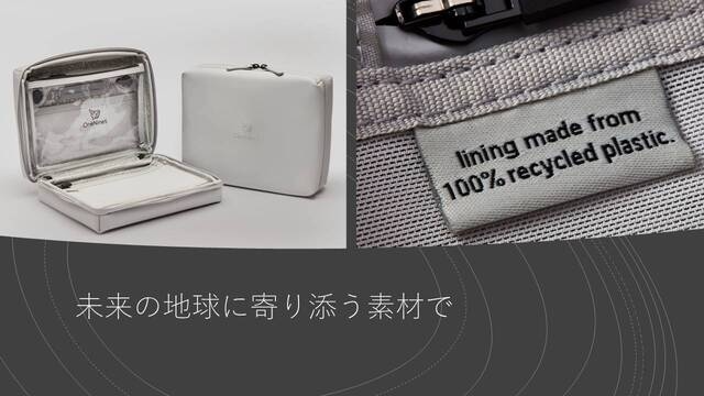 ・リサイクルポリエステルを使い、使い捨てプラスチック削減を目指します。