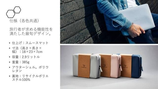 スタイル、機能性、製品、パッケージ、リサイクルへの環境問題をとことん優先したデザインで、トラベルアイテムを最新のカタチへと常に進化させています。