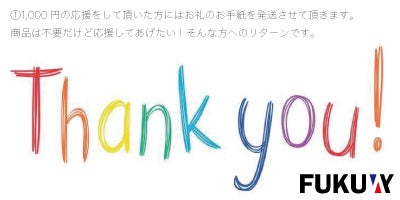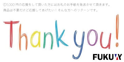 ①1,000円の応援をして頂いた方にはお礼のお手紙を提供させて頂きます。