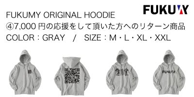 ④7,000円の応援をして頂いた方にはFUKUMY パーカーを提供させて頂きます。