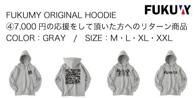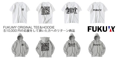 ⑤10,000円の応援をして頂いた方にはFUKUMY Tシャツ&FUKUMY パーカーを提供させて頂きます。
