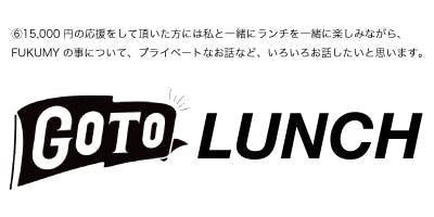 ⑥15,000円の応援をして頂いた方には私と一緒にランチを一緒に楽しみながら、FUKUMYのデザインや今後について、プライベートなお話など、いろいろお話したいと思います。