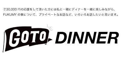 ⑦30,000円の応援をして頂いた方には私と一緒にディナーを一緒に楽しみながら、FUKUMYのデザインや今後について、プライベートなお話など、いろいろお話したいと思います。