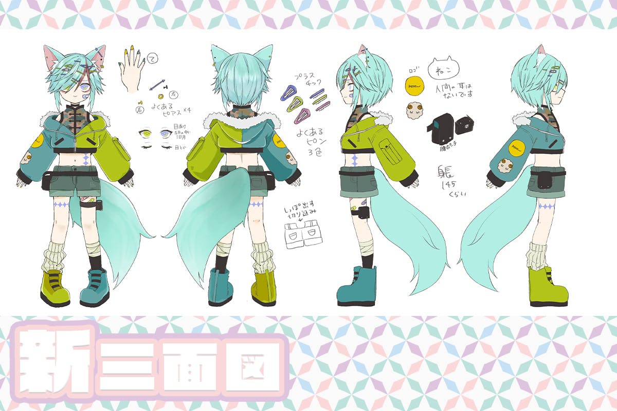 2021/01/11 18:44表情サンプルが完成しました!「ぴえん顔」や「ねこ顔」「じと目」など、色々な表情を製作していただく予定です。また、三面図に、カラー詳細Verも完成いたしました!こちらをクリエイターさんに提出し、イラストに寄せたデザインをしていただきます。3Dお披露目配信は4月予定!今しばらくお待ちください( *´˘` ) もっと見る