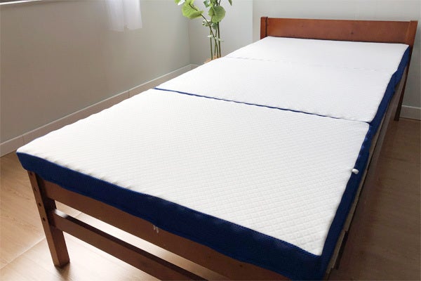 A:床、ベッドフレーム、マットレスと3パターンの使い方がありますが、柔らかいベットマットレスの上に敷くと本品が沈み込んでしまうことがあるので、フローリングや畳、またはベッドフレームの上に直接敷いてお使いすることをお勧めします。側生地の汚れや傷みを防ぐためにシーツやカバーをお使いください。