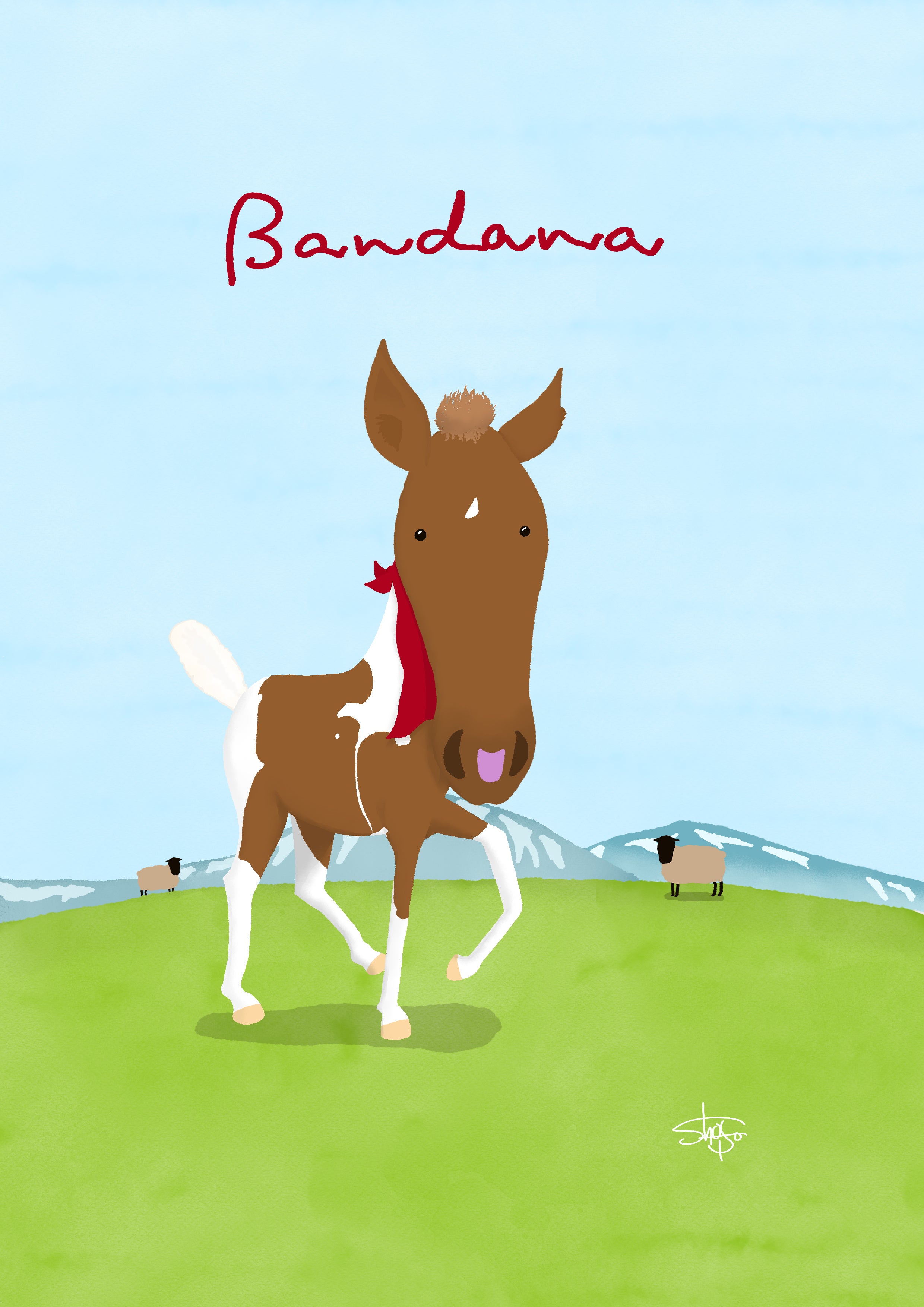 今回、馬のイラストやデザインをされているショーゴさんがバンダナのレオン(昨年生まれた子馬)のイラストを描いてくださいました!ありがとうございます!