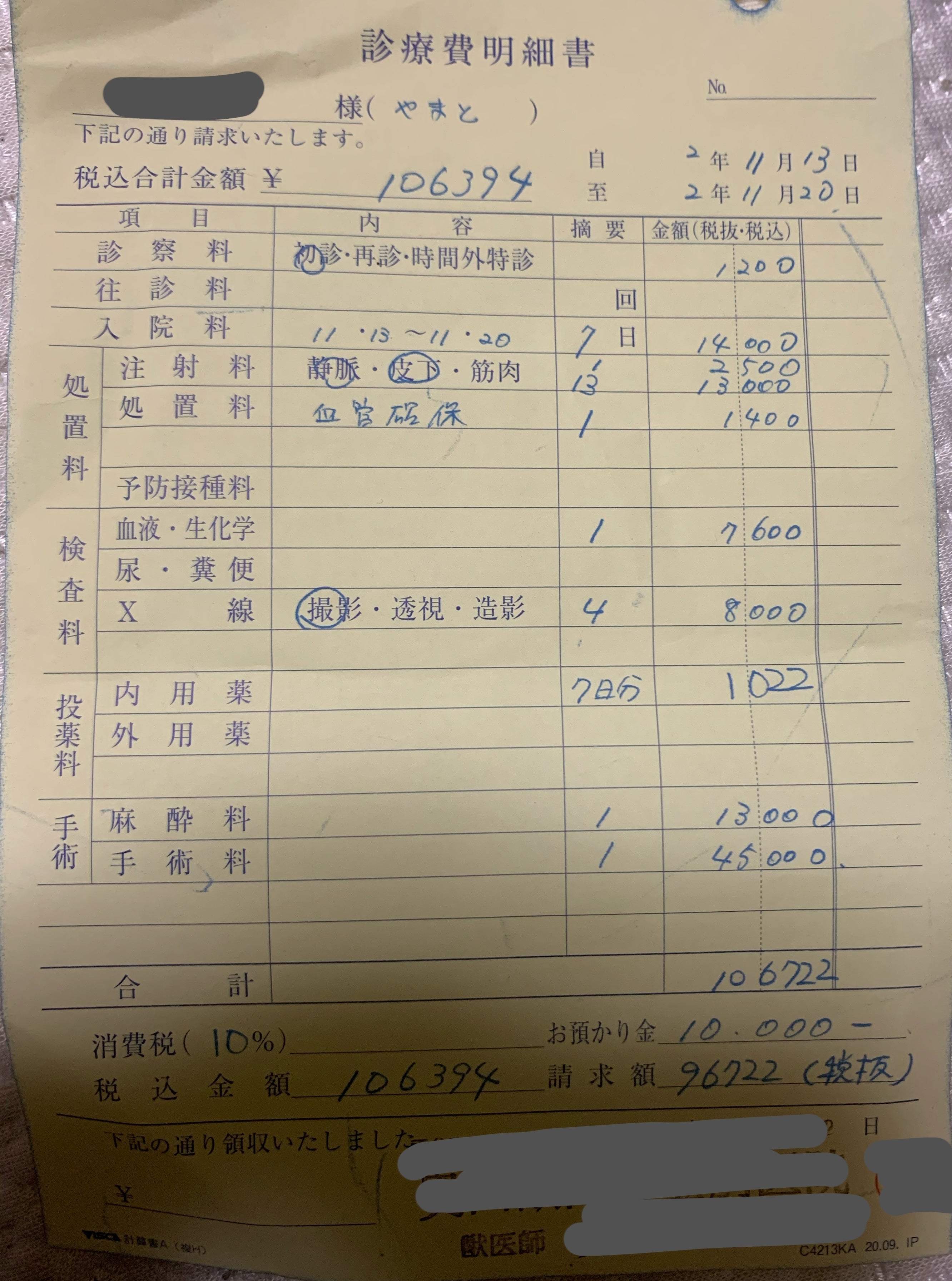 ・手術入院費…約15万円(今後含む)