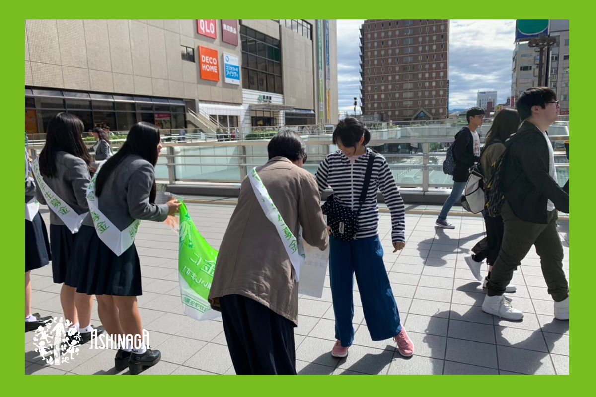 私たちあしなが学生募金事務局は、毎年春と秋の年2回、全国約200か所の拠点で「あしなが学生募金」を開催しています。街頭の皆様からのご寄付は全額を一般財団法人あしなが育英会に寄付し、2分の1を日本国内の病気・災害・自死によって親を亡くした子どもたちや親に障がいがあり働くことの出来ない家庭の子どもたちの奨学金として、もう半分をサブサハラ・アフリカ49ヵ国の遺児学生の高等教育支援奨学金のために使われています。