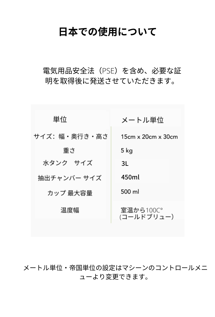 ・抽出チャンバーの容量が350mlより450mlに増えました。より多くのお茶を入れることができます!