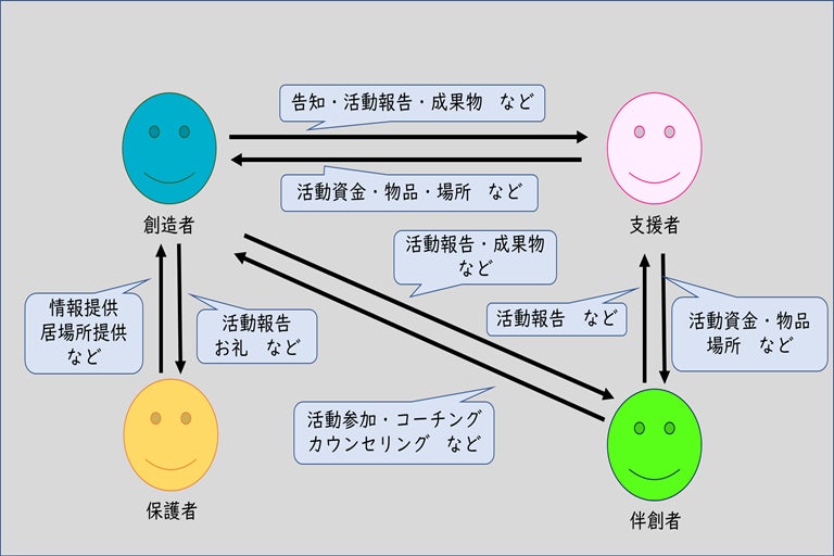 ・創造者と伴創者が活動していくための環境づくりを行います。
