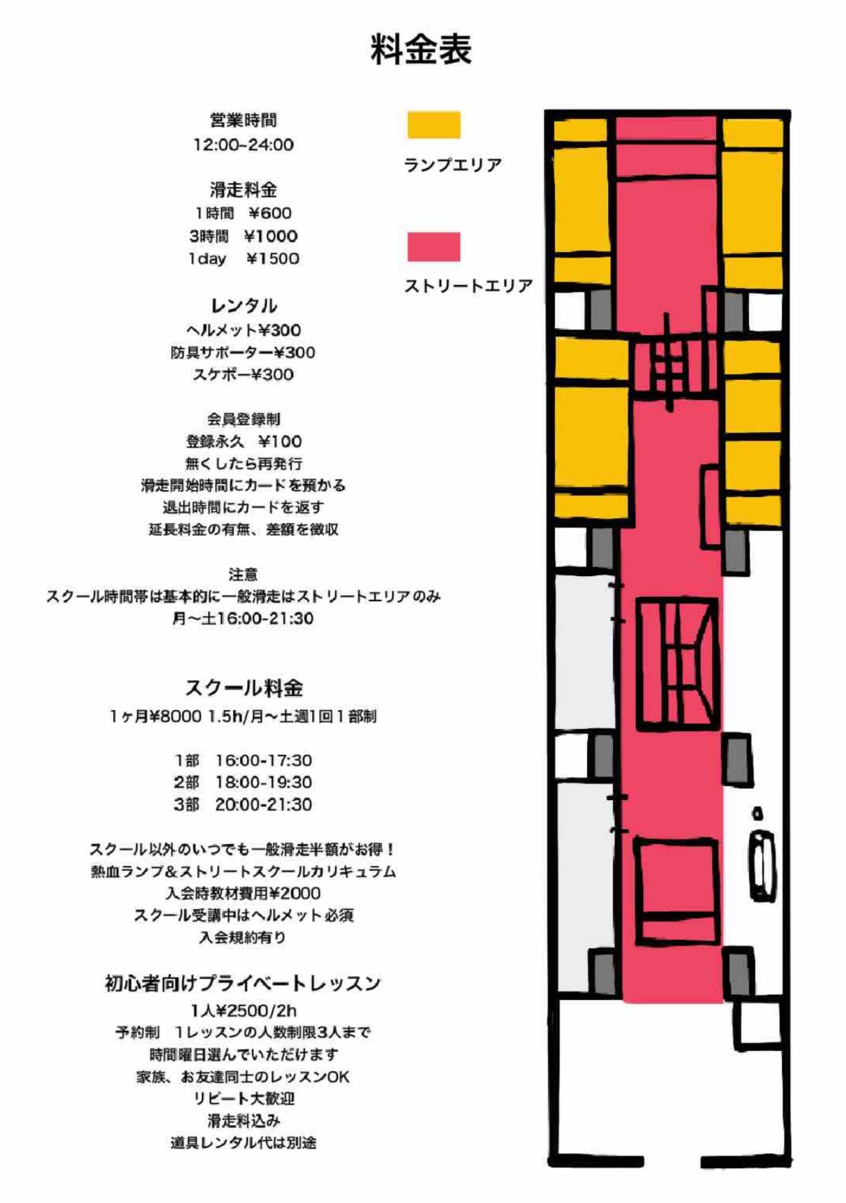 しっかりと今後このスケートパークが皆様のスケートボードの練習場所として生き残っていけるように、改めて滑走料やスクールの料金を見直しました!