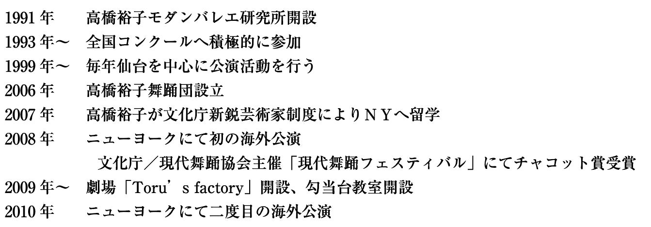髙橋裕子舞踊団は、設立当初から30年間、舞台を通して本物の芸術を作り続けてきました。