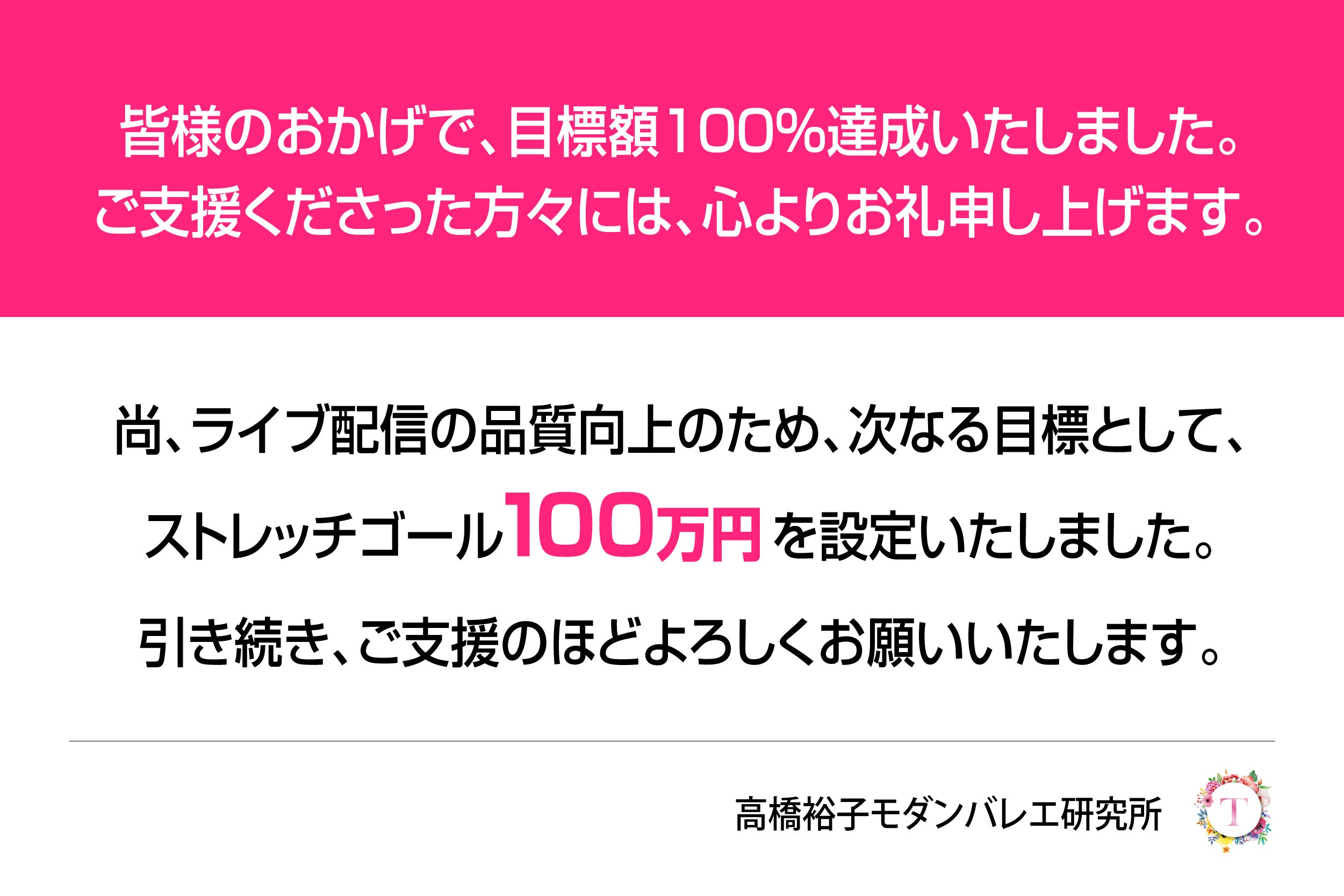 そこで、より品質の高いライブ配信をお届けしようと、次なる目標であるストレッチゴール100万円を設定いたしました。
