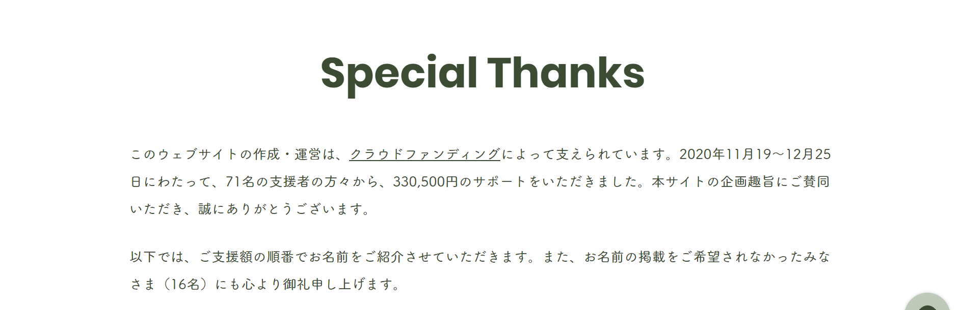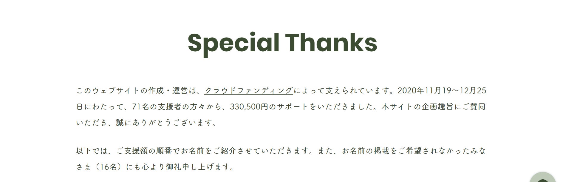 2020年12月25日 クラウドファンディング終了・ウェブサイト完成