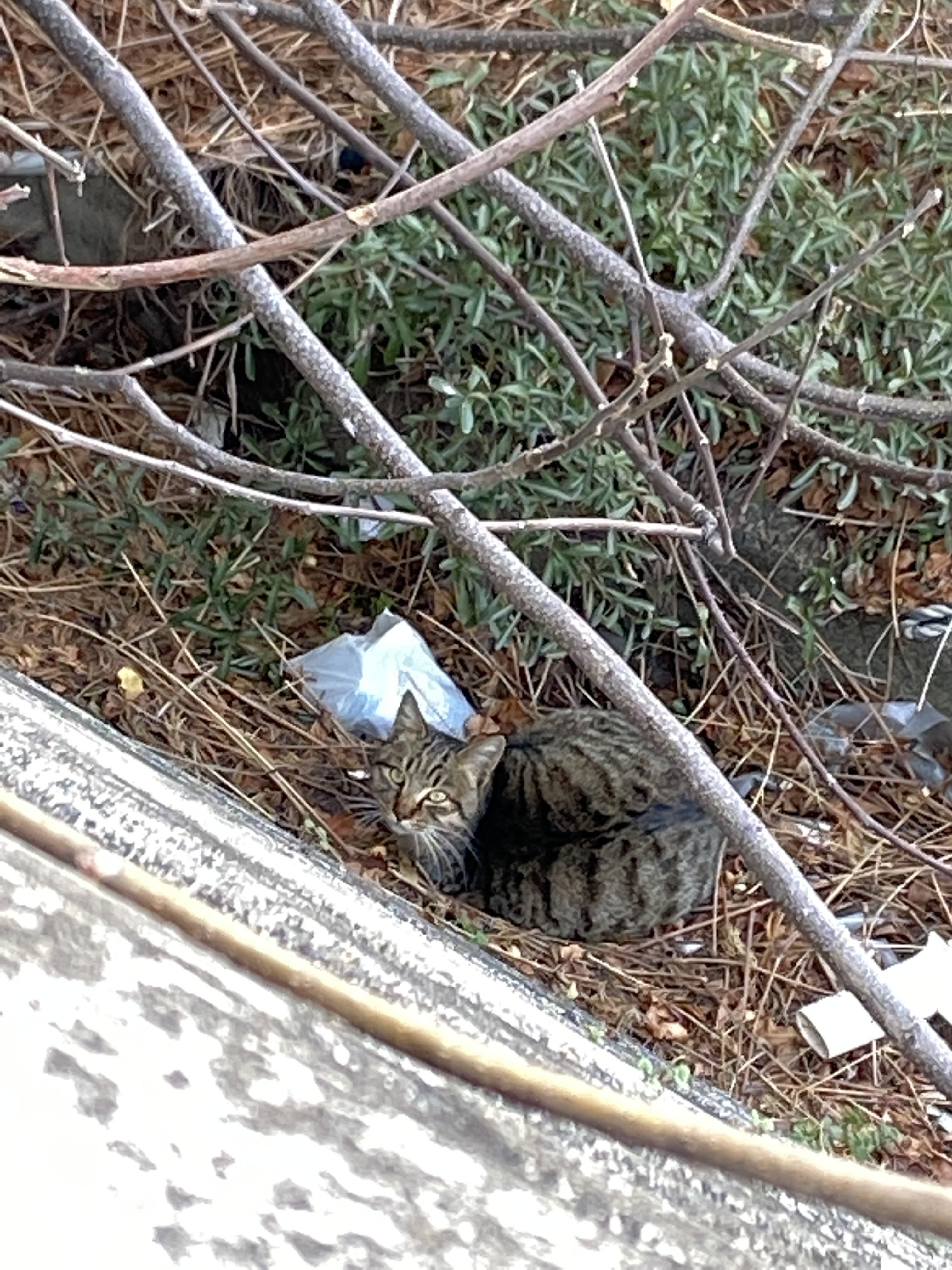 プーアルを発見した時も、ここに座り込んでこちらを見ていたのです。全く同じ。