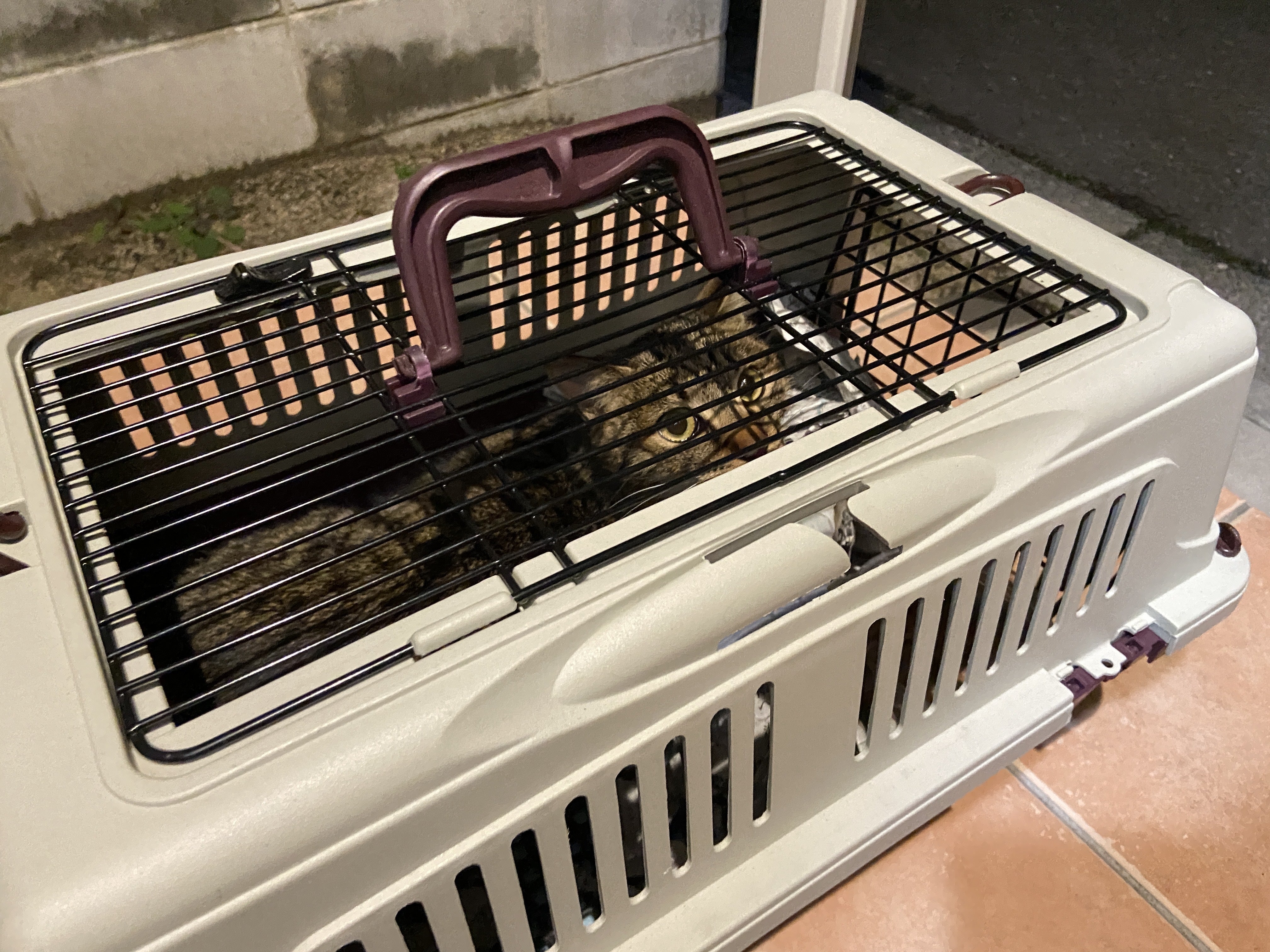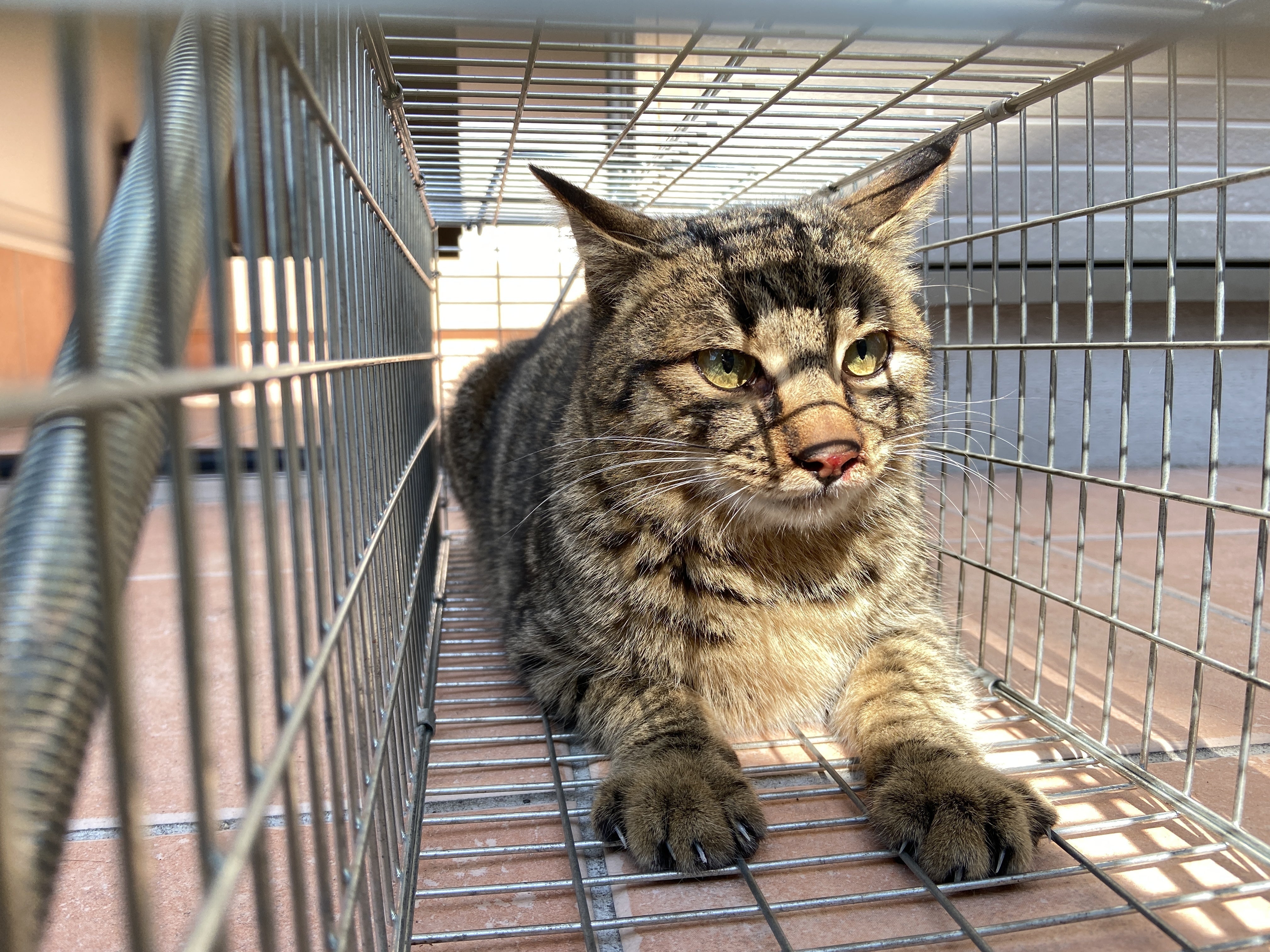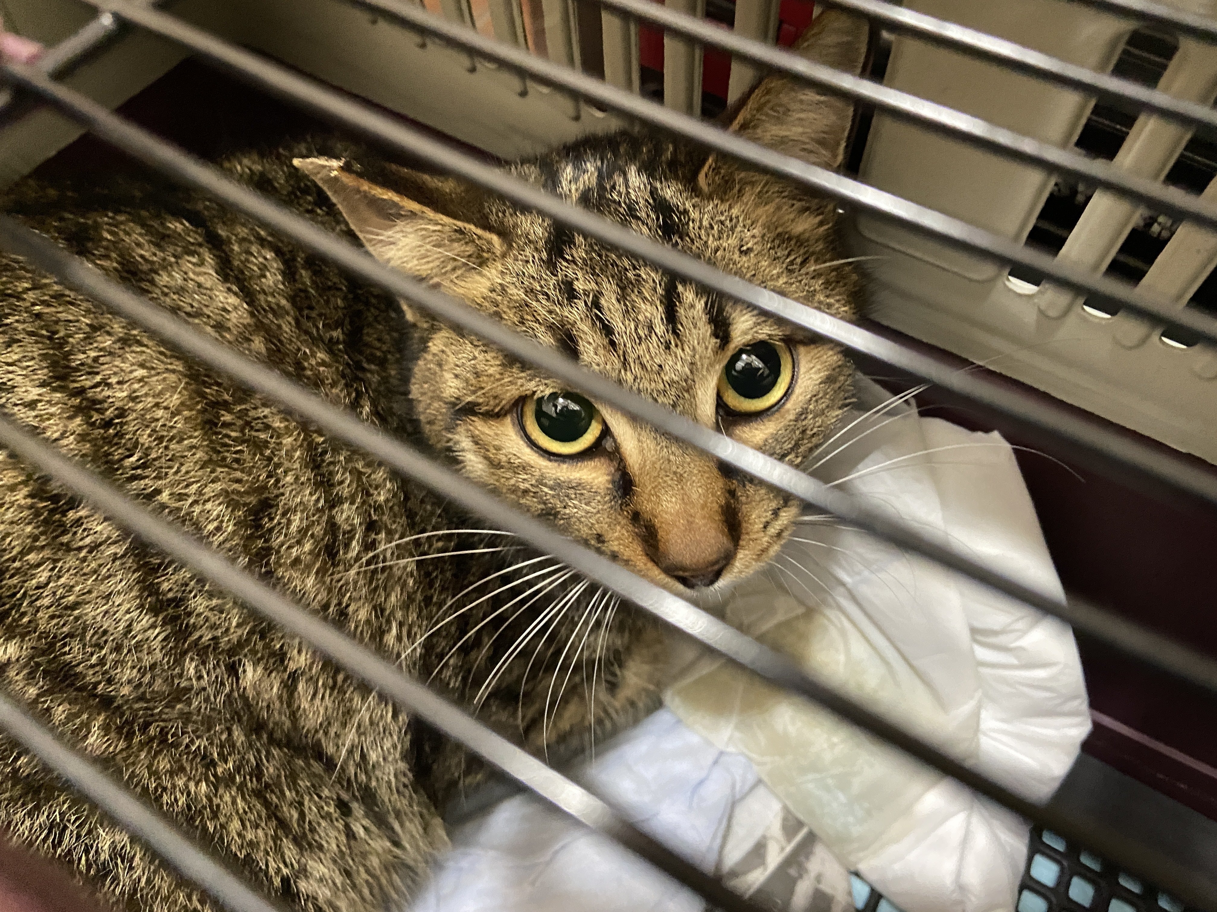 夕方、捕獲器からキャリーに移すのは難しそうなのですが、手術まで時間あるしおしっこと食事をして欲しいなぁ…と近づいたらパニック起こしてひっくり返って、おしっこ漏れました。