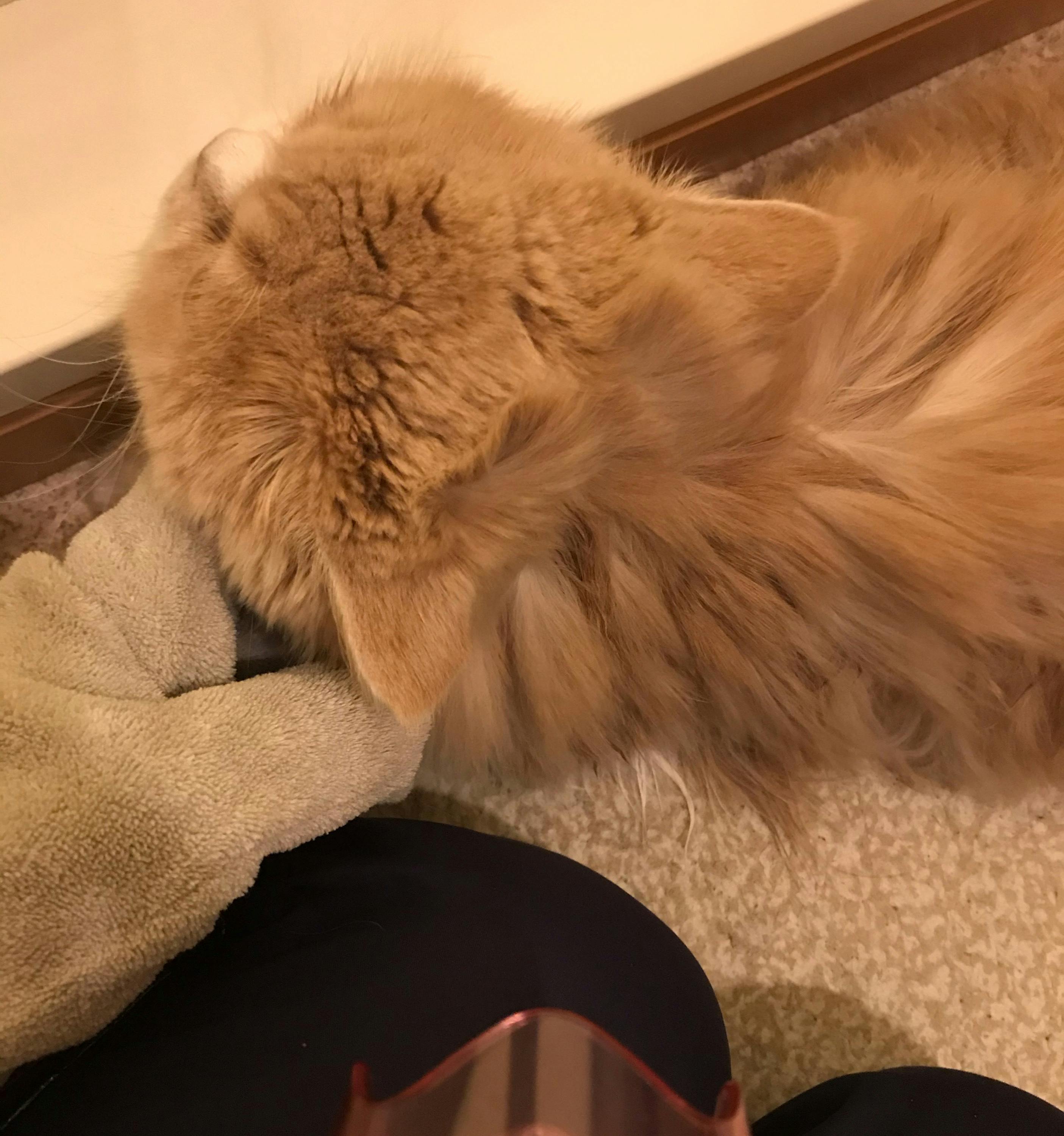 逃げ回るわ、後脚で蹴り蹴り蹴り蹴りされるわでガードしてないと私が傷だらけです。