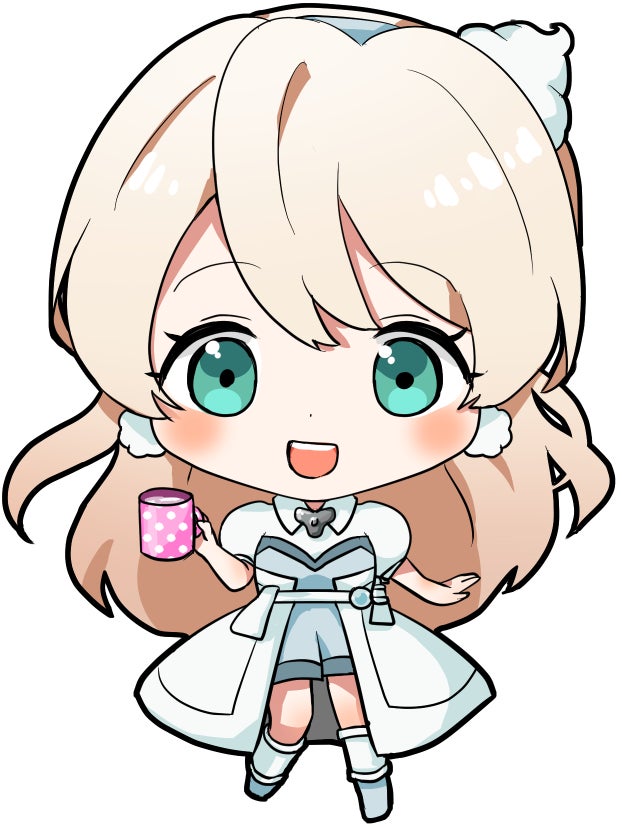 キャラクター原案:モモザ・織田 右のキャラクター原案を基にLive2Dモデルの製作を進めておりますが、Live2D用に最適化したデザインにブラッシュアップする過程で、一部パーツの変更、追加や削除を予定しております。
