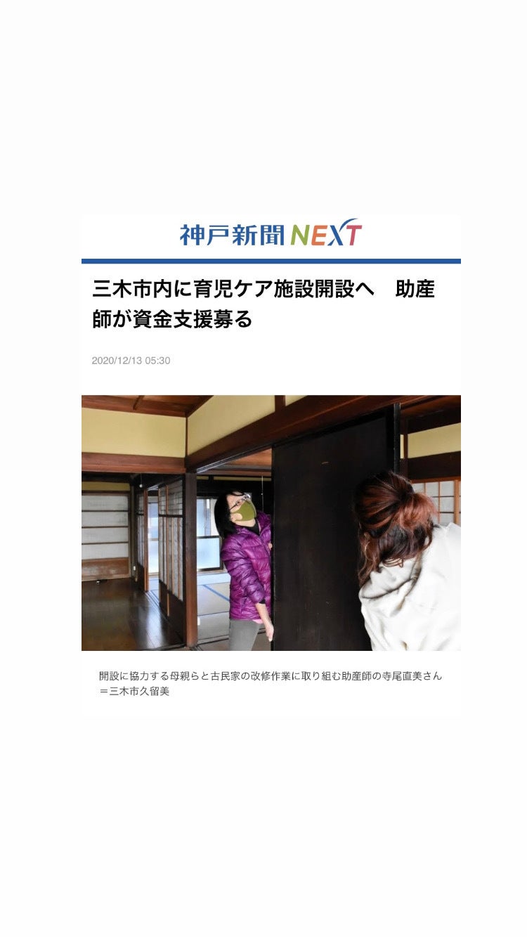 2020/12/14 05:00助産院(産後ケア施設)と併設のカフェについて、神戸新聞に取り上げていただきました。ご支援いただいた方、本当にありがとうございます。28日までですので、引き続きのご協力、シェア、よろしくお願いします。https://www.kobe-np.co.jp/news/miki/202012/sp/0013933923.shtml もっと見る
