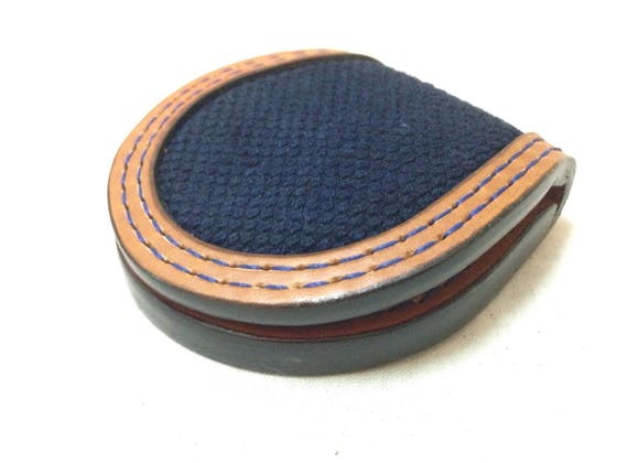 小粒の武州正藍染の刺し子生地と仙台のレザー職人とのコラボレーション商品です。