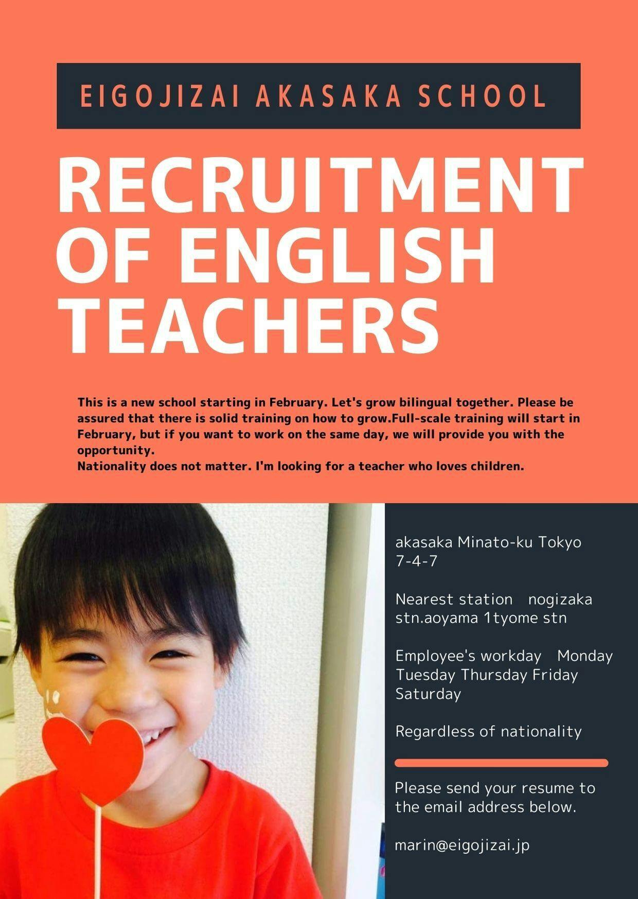 お知り合いで、お仕事を探している英語の先生がいらっしゃれば、ぜひお伝えください!