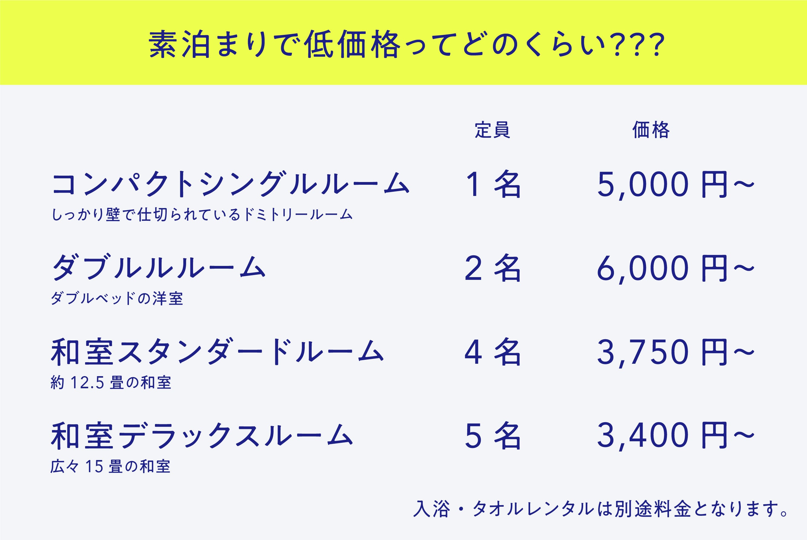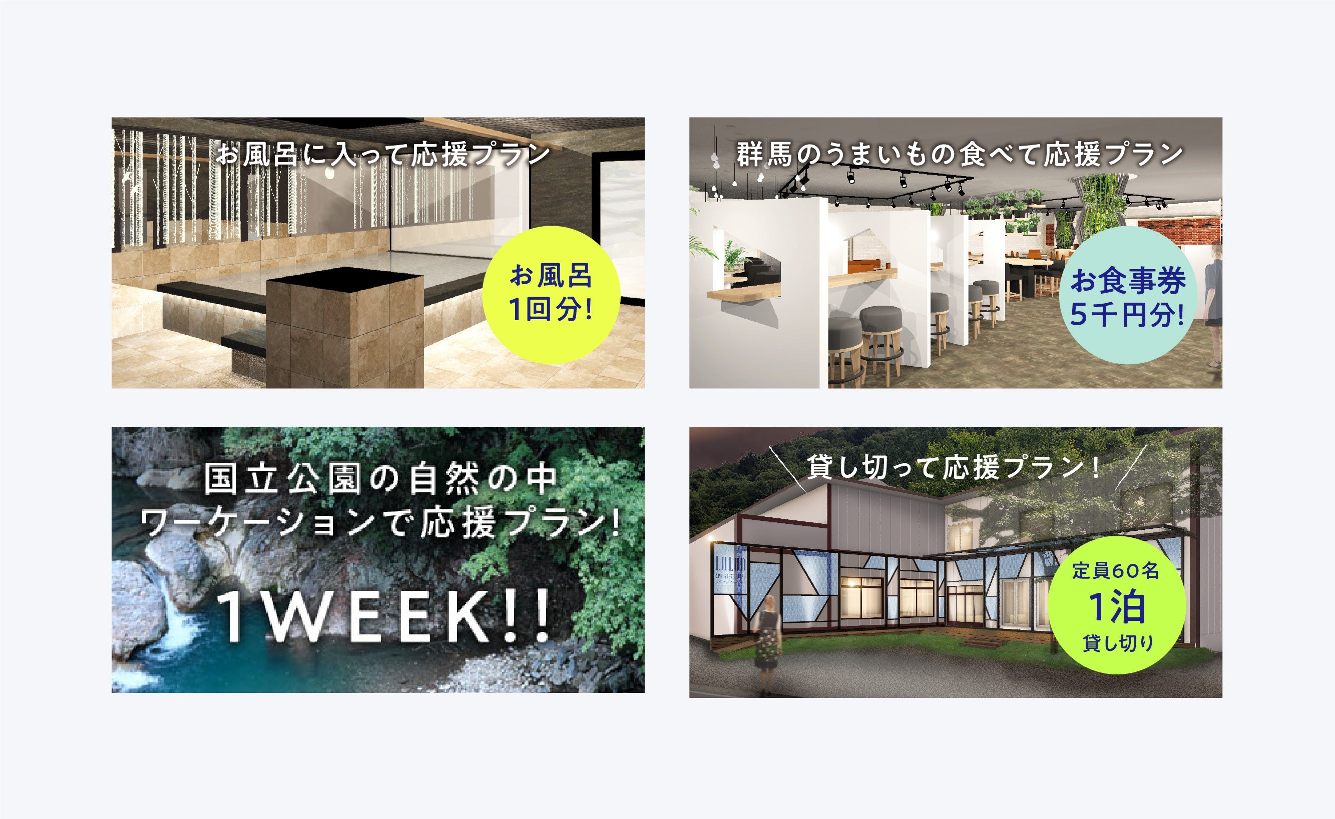 四万温泉はかつて湯治場として栄えた地です。昔ながらの湯治は長期滞在する人がほとんどで湯治宿は素泊まりが基本でした。しかし現在は温泉地への旅行は、一泊二日で「特別贅沢な体験」をするために温泉地へ行くというのがスタンダード。今回のルルドでは昔ながらの湯治の良さを取り入れ、何日も滞在できるような低価格で素泊まりの宿を作りたいと考えています。