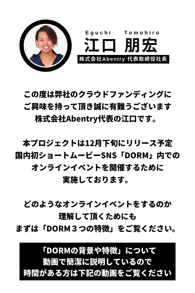 つきましては、エンターテインメントとしての「DORM」に磨きをかけるため、イベント企画を応援してくださる、「支援メンバー」を募集しています。