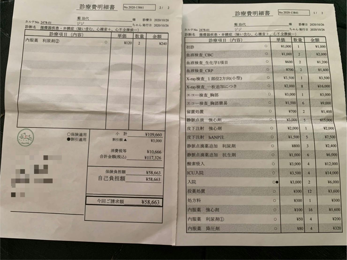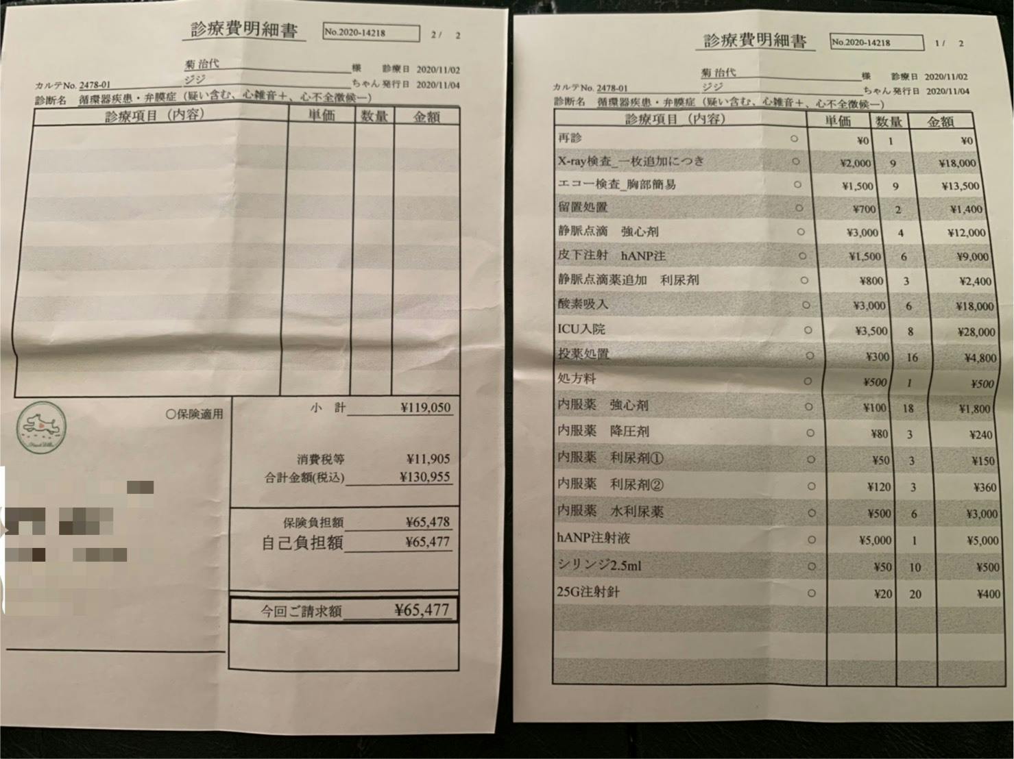 2020/10/20 朝、やはりまだ具合が悪そうだったので心臓外来のある病院にセカンドオピニオンにいきました。そしてその日の検査で『僧帽弁閉鎖不全症』と診断されました。