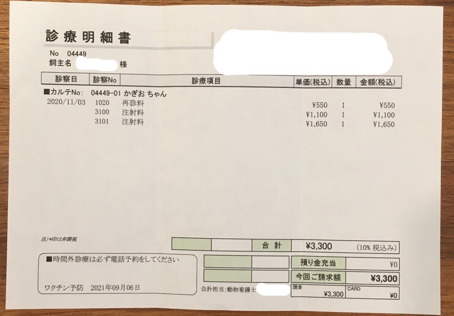 かぎおの体調が改善しないので、別の動物病院へ行きました。