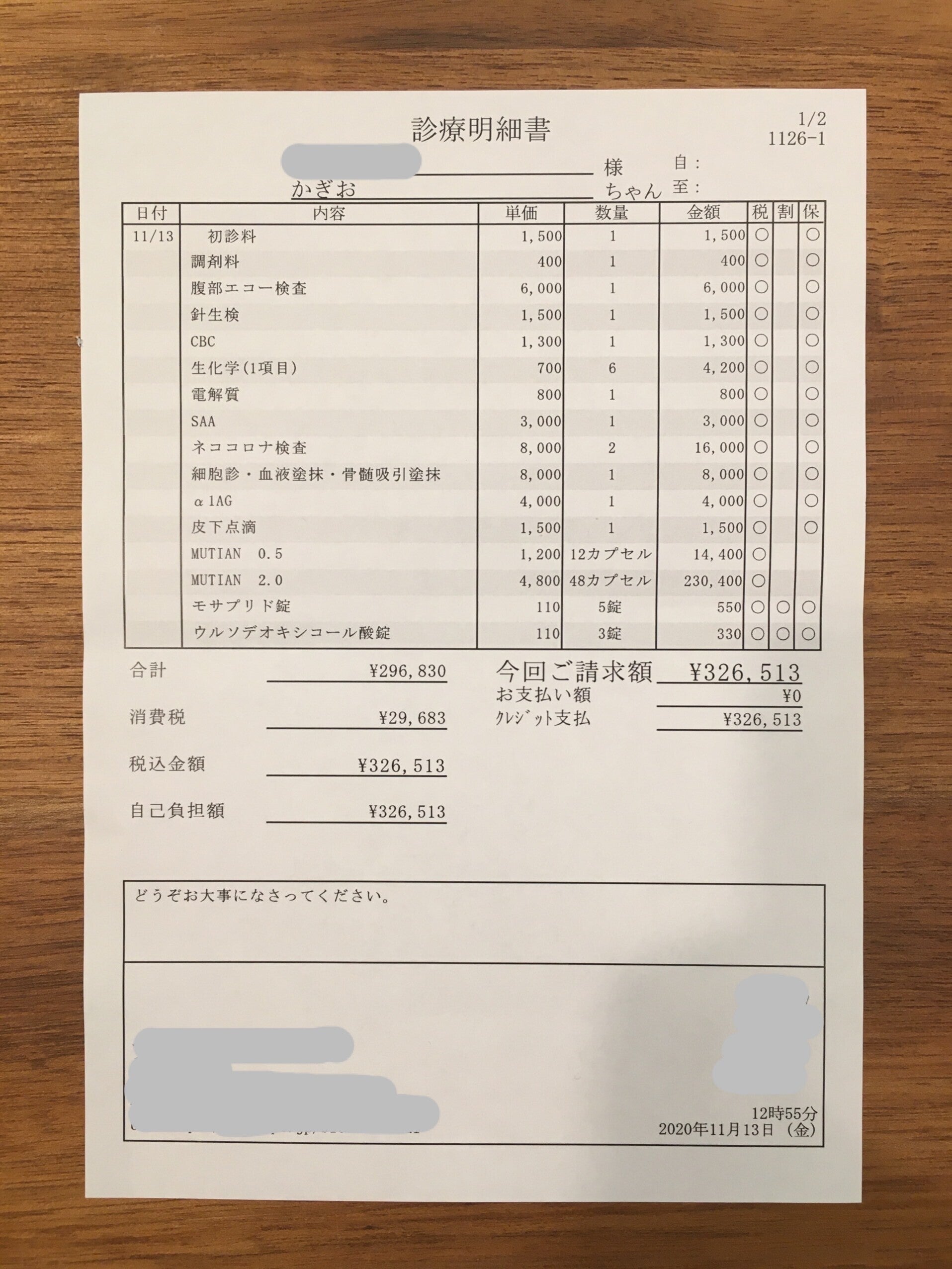 この日の受診では、9日分の薬の処方と検査などで32万円がかかりました。