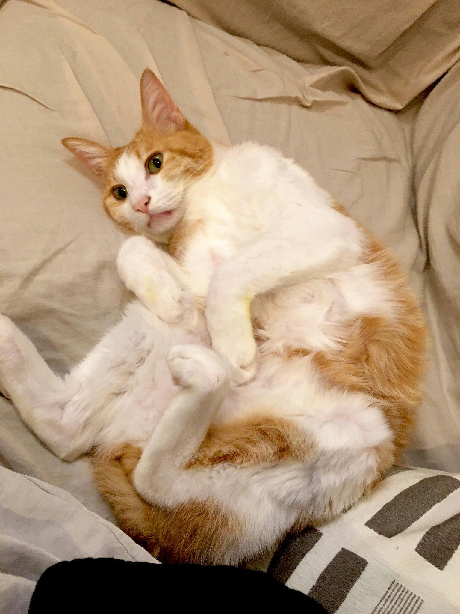病気にかかって以来はじめて、かぎおがへそ天をしている様子を見られました!