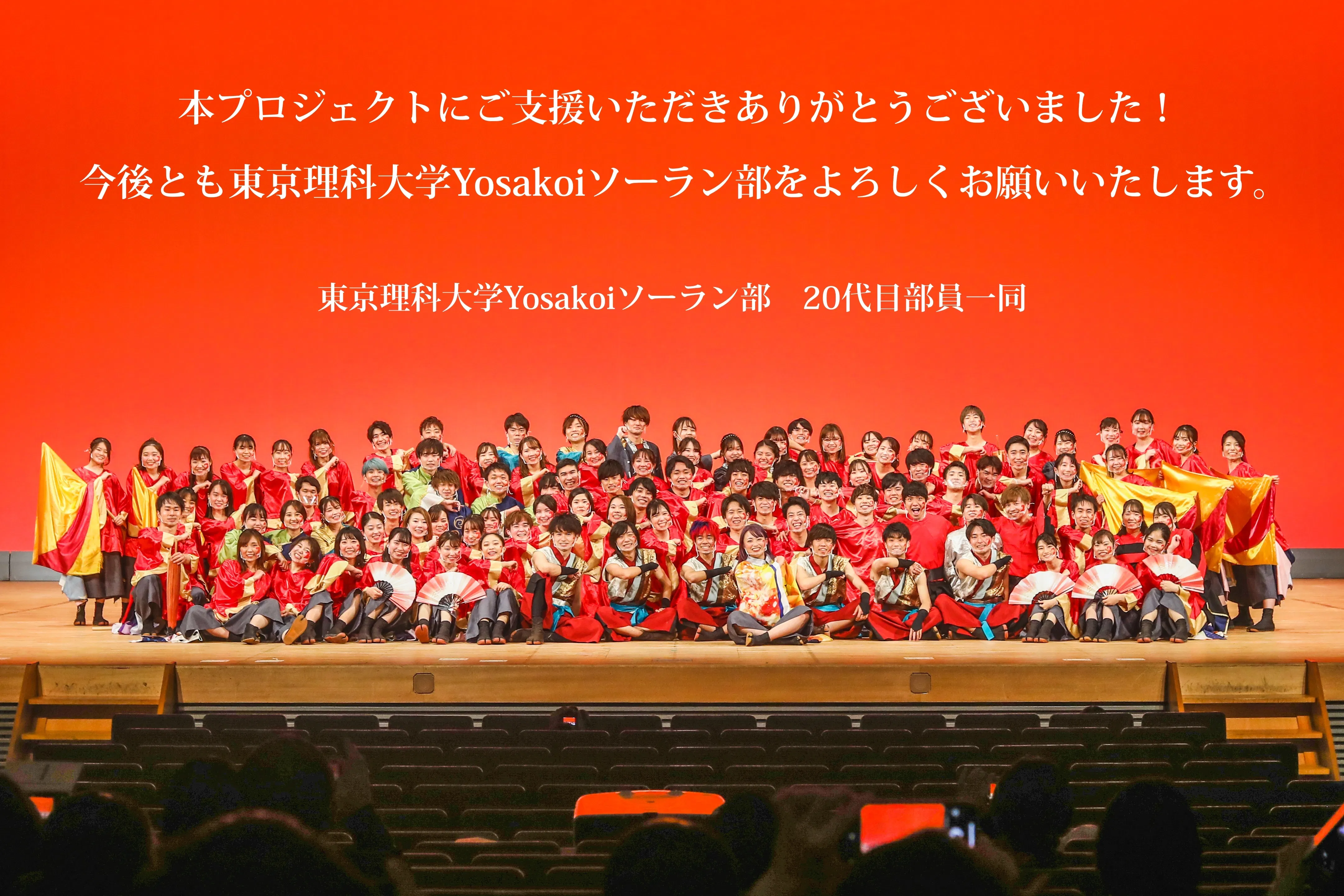 20代目、東京理科大学Yosakoiソーラン部の集大成となる本公演に、どうか皆様の力をお貸しいただけないでしょうか。