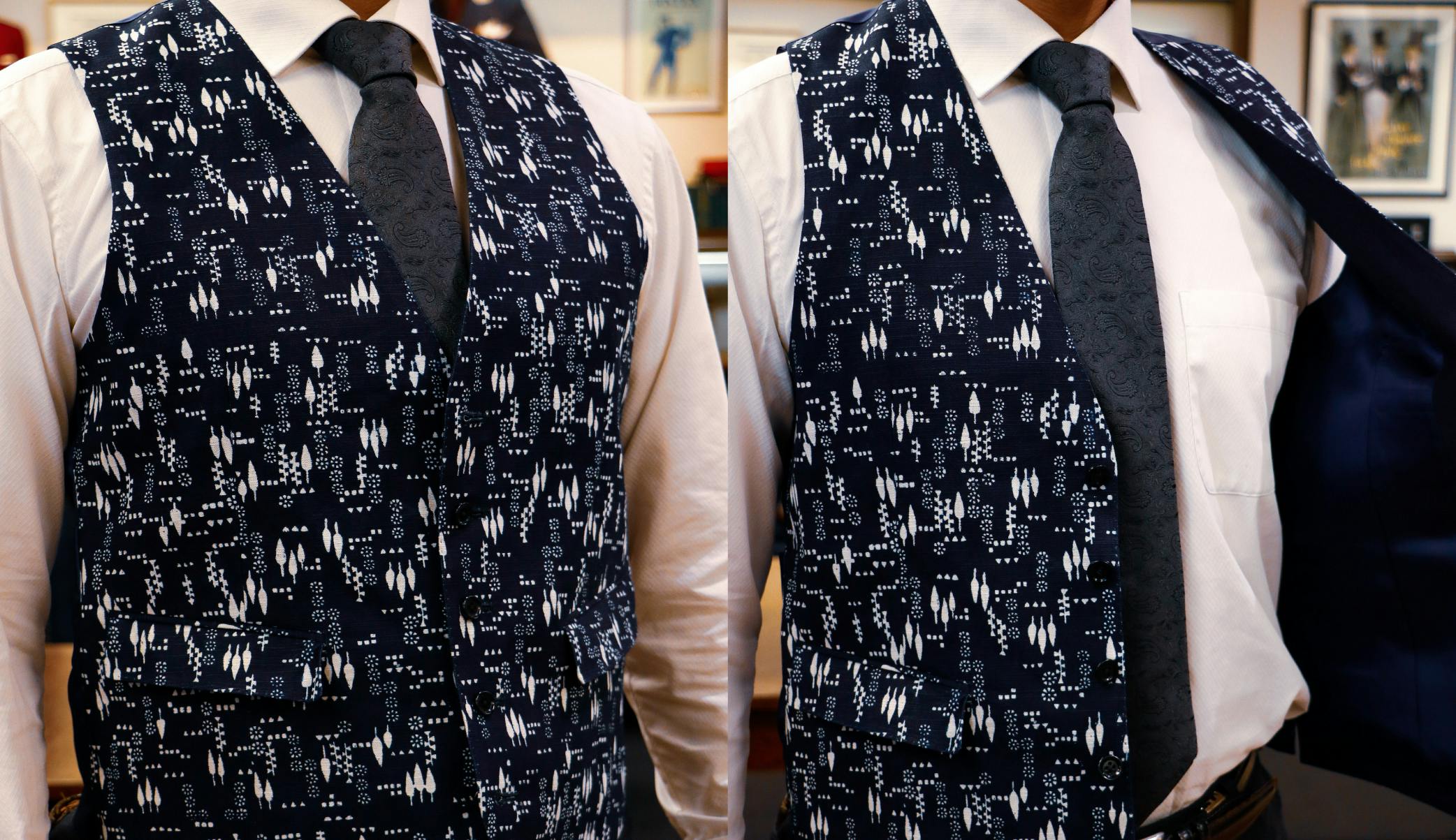 このクラウドファンディングの為に作られた美しい藍染の高級生地を使用し、那須夢工房が縫製する特別なコラボベストを作りました。