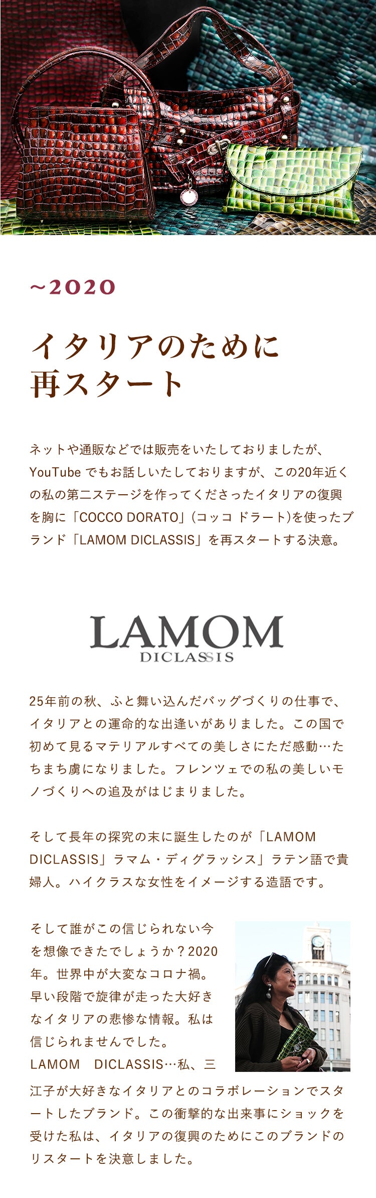 念願のイタリアコラボブランド「LAMOM DICLASSIS」第一弾、長財布「レジーナ スプレンデレ ポルタフォリオ」をご愛用いただけると幸いです。