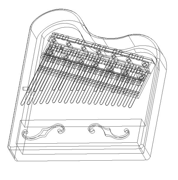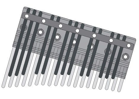 今までのカリンバキー装着方法では、ピアノの鍵盤のように実現することが出来ないという結論を出して悩んだ結果、ギターやウクレレなどのブリッジの上にキーを装着、ブリッジをカスケードにしハーモニカリードのように、既にチューニングがされているキーをリベットで固定させる方法を考えてみました。