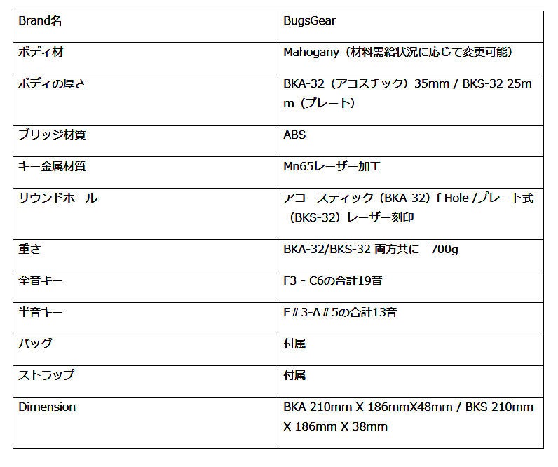 BugsGearクロマティック カリンバの仕様