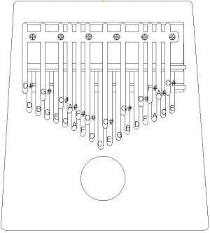 カリンバのキーは、レーザーで精密に切断されますがアセンブリの時ネジホールとか他の部品偏差の為音程がそれぞれ異なります.アセンブリ後音程が低いキーは、工場から工具で削ります音程が高いキーはカリンバと一緒に入っているアルミテープを適切にカットしキーの下の部分に貼り付けて音程を合わせます。詳細については、マニュアルを参照してください。