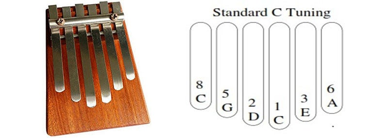 アフリカで開始されたため、限られた単純な音階を持って歌を歌う時のリズム伴奏用に使われた土俗楽器をイギリス人のヒュートレイシー(Hugh Tracey)が対称キー配列に発展させ、世界に普及させたカリンバはペンタトニック(ドレミソーラー5音階)または1オクターブあたりのミ - ファ、シ - ド以外半音がなく、7つの音のみ持っているダイヤトニック(7音階)で構成されています。
