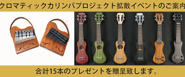 当選プレゼントリスト:クロマチックカリンバ5本(アコースティック、プレート式ランダム選定)アコースティックピーナッツウクレレ5本、エレクトリックピーナッツウクレレ5本総15本