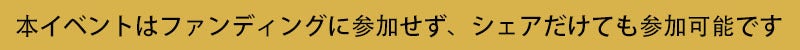 イベントへの参加方法:本プロジェクトの上部に有るFacebook,Twitter,Lineのタイムラインで共有し,そのリンクをコメント蘭に掲載または、メッセージにて送っていただける方.