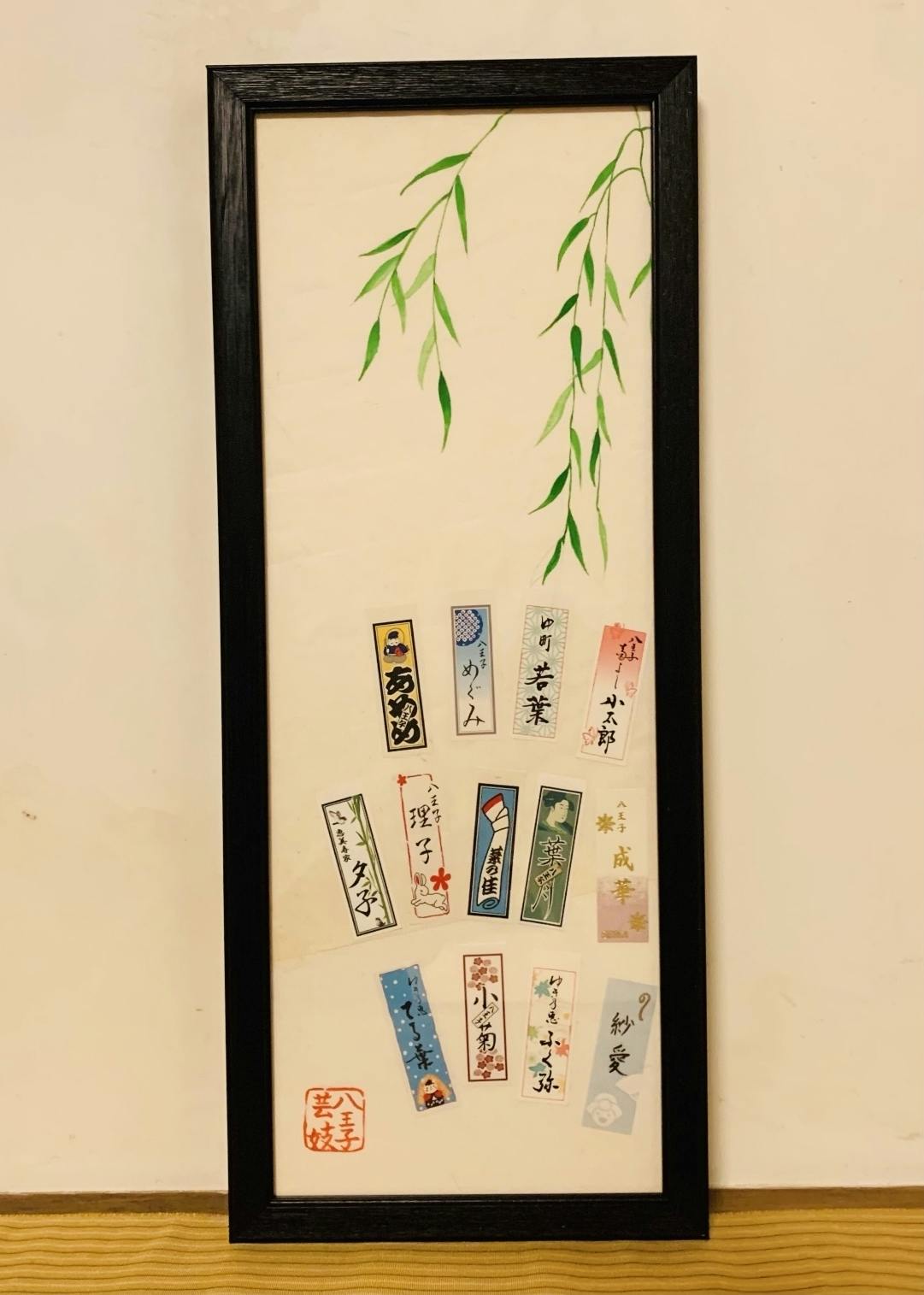 もしくは【八王子芸者衆全員の千社札(額入り)&芸者衆オリジナル浴衣の生地を使ったトートバッグ&人力車手ぬぐい】