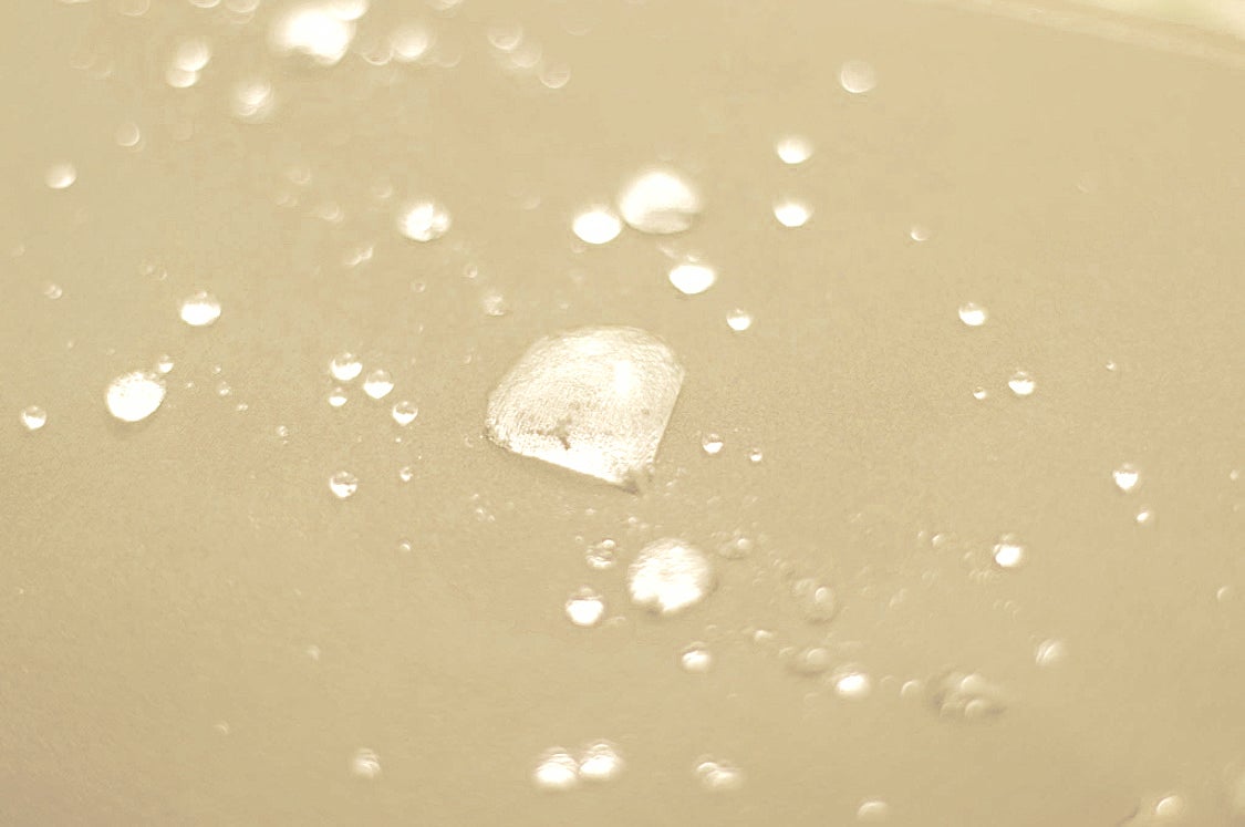 この粒の大きさが、水よりも小さいため、表面張力が働き、水や汚れをを弾いてくれます。