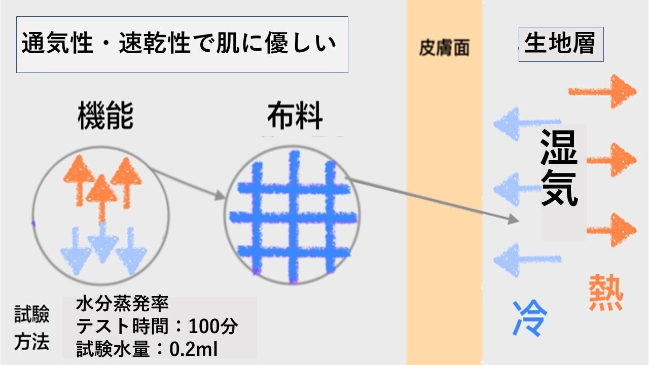 このように撥水生地特性の通気性・速乾性を活かしたことによって快適な肌触りで蒸し暑い夏の日でも快適な状態を保つことができます。