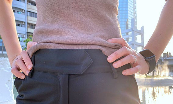 ベルトをしなくてもファッショナブルでシンプルな腰回りとフロントのデザインになっています。